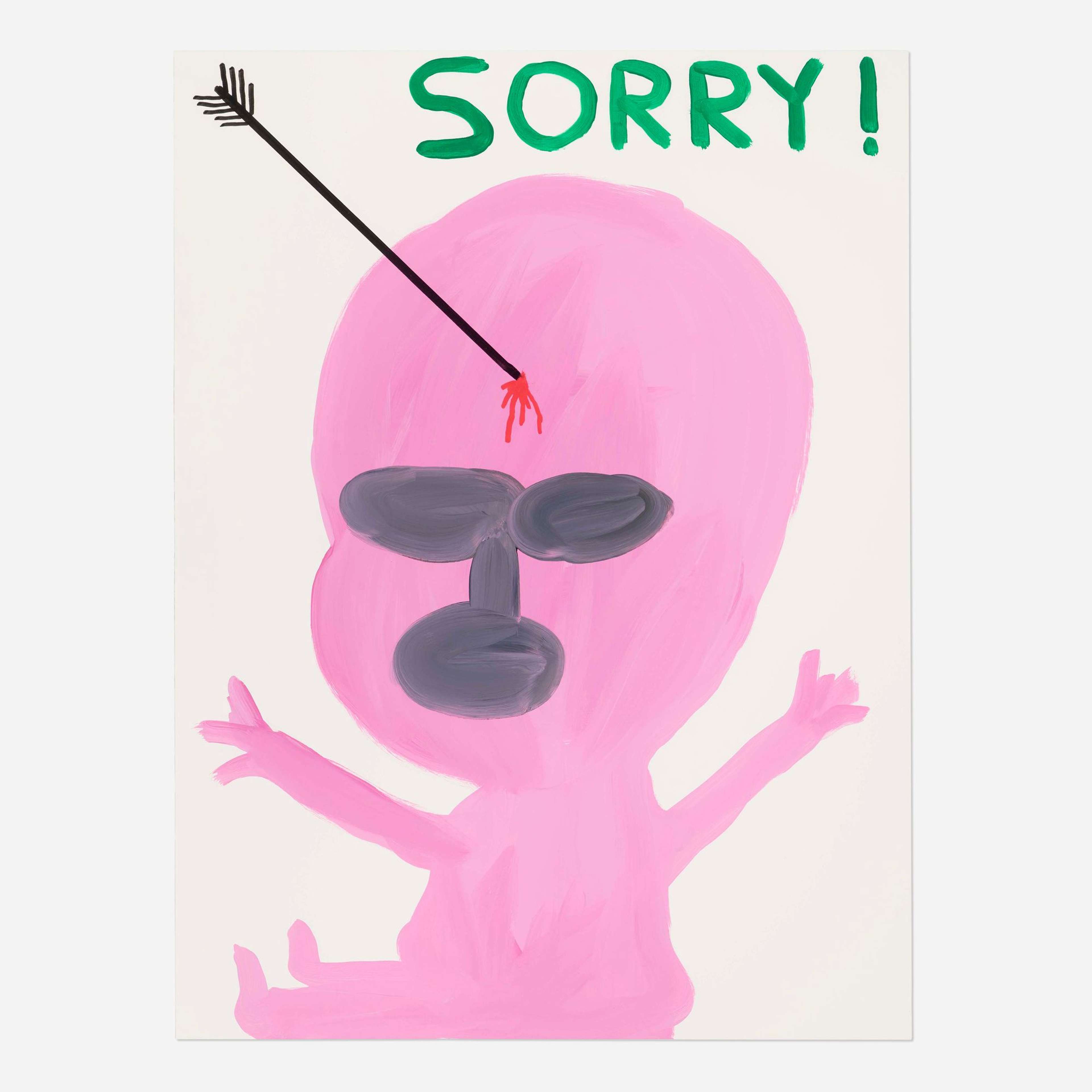 Sorry! © David Shrigley 2012Shrigley's unsettling Sorry! shows his sinister artistic oeuvre. Created in 2012 and sold at Rago Auctions on 15 June 2022, this work achieved $13,750 (£11,396). Bidding started at $5,000, and surpassed the high estimate of $9,000, a testament to Shrigley's recent popularity and success at auction.